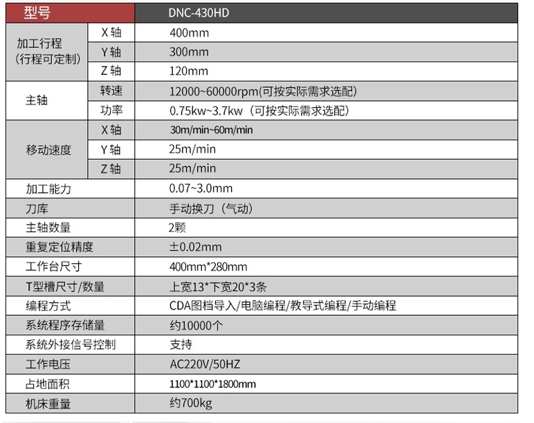 ☆加工行程:400*300*120mm